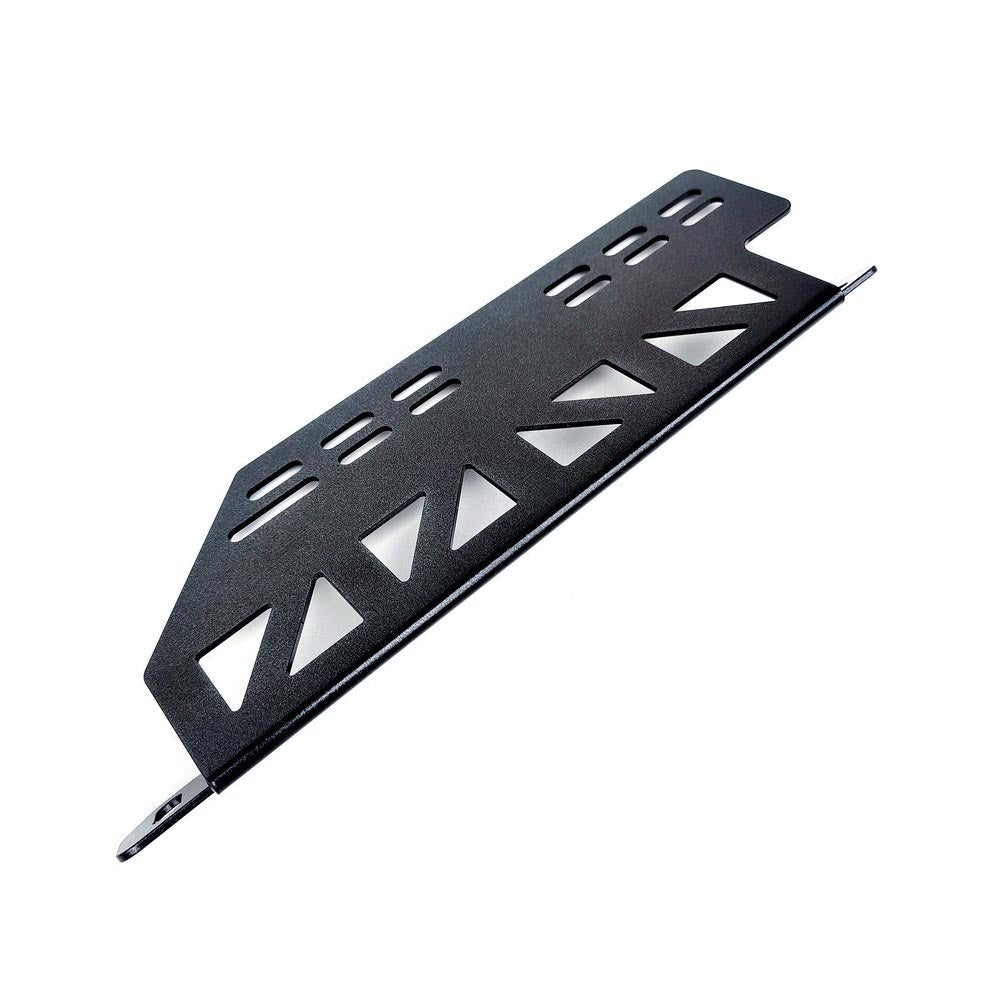 Die lasergeschnittene, CNC-gebogene Feuerlöscher-Halterung wird aus E355 Stahl gefertigt und Metallic-Graphit pulverbeschichtet.