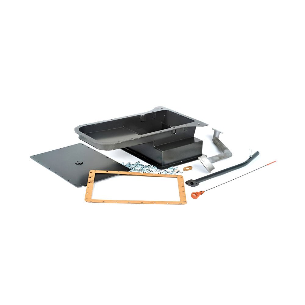 Die Ölwanne hat eine zusätzliche Kapazität, um zu verhindern, dass das Sieb Luft ansaugt. Überarbeitete Leitbleche und verbesserter Öl-Durchfluss. Lasergeschnitten, CNC gebogen und schön verschweißt.
