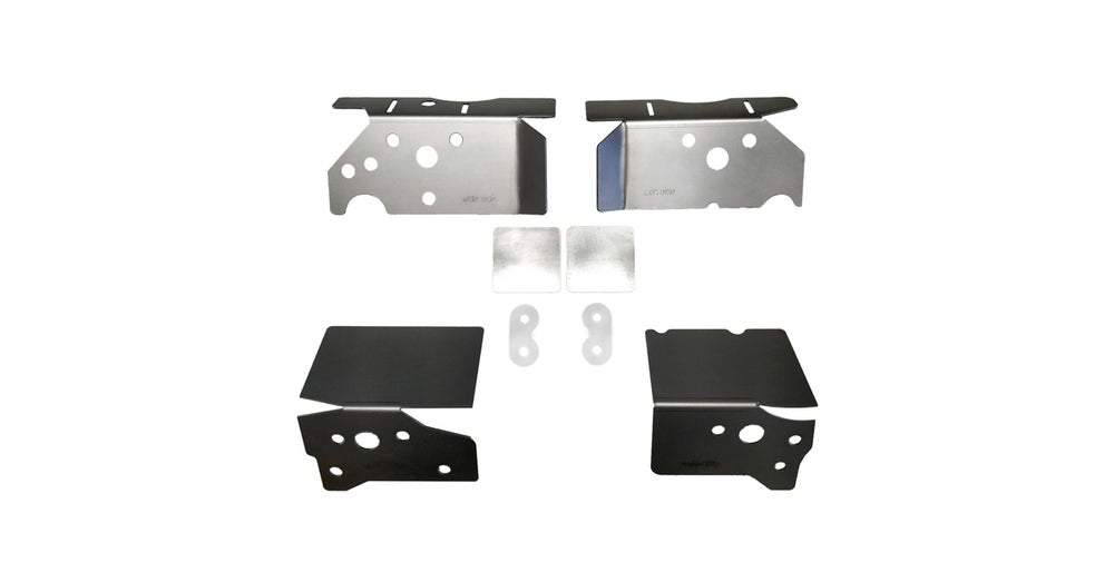Das Set beinhaltet vier lasergeschnittene Verstärkungsbleche für die Achsaufnahmen, zwei Distanzbleche für die Differentialaufnahmen sowie zwei Reparaturbleche, um die erforderlichen Ausschnitte im Kofferraum wieder zu verschließen.