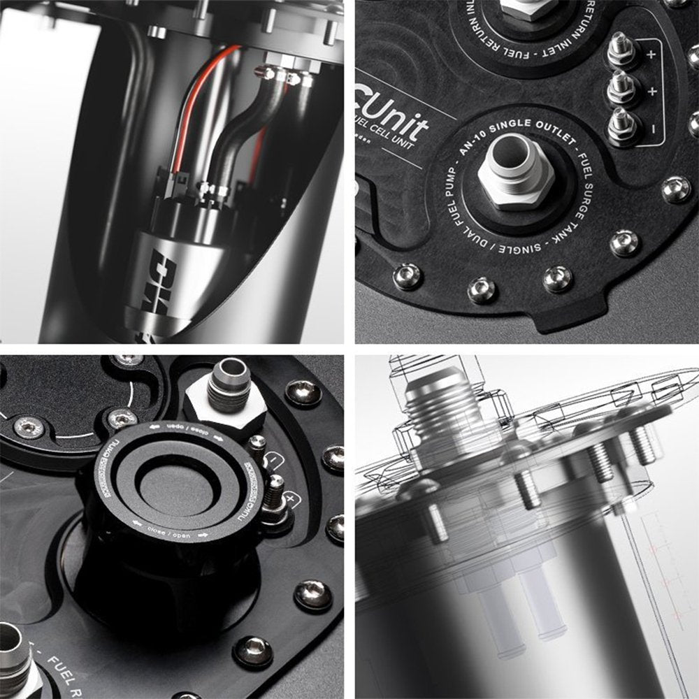 Die Competition Fuel Cell Unit von Nuke Performance wird mit der mitgelieferten Billet Alu Tankdeckeleinheit mit eigenem Überrollschutz geliefert.- Innendurchmesser von mindestens 38 mm