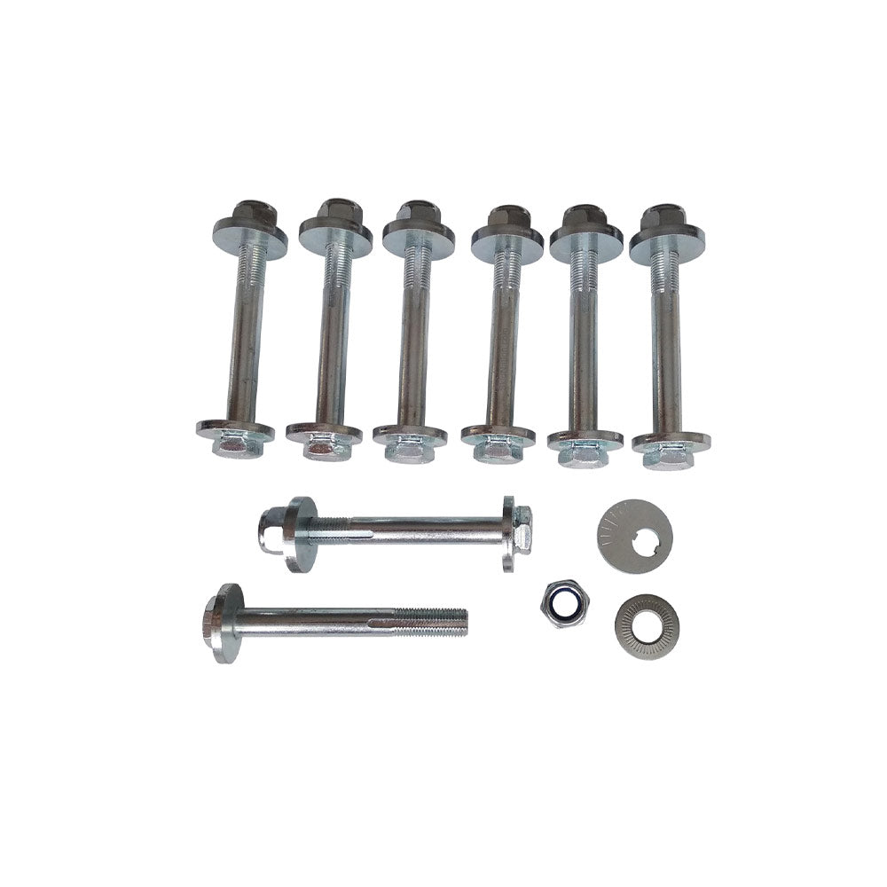 Im Vergleich zu den Original-Schrauben, die im Laufe der Zeit ausleiern oder sich festsetzen können, behalten unsere Bolzen die eingestellte Camber-Geometrie viel besser und bieten so eine konstante Fahrwerksausrichtung – selbst unter extremen Belastungen.