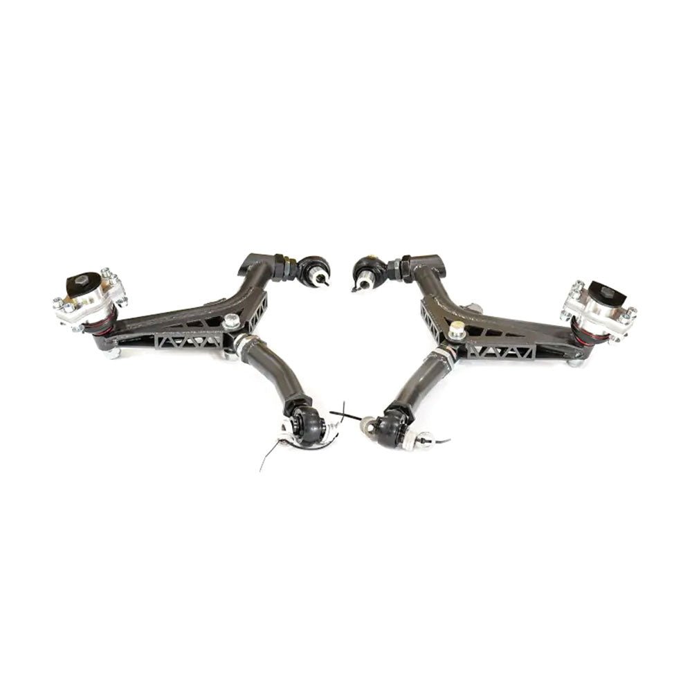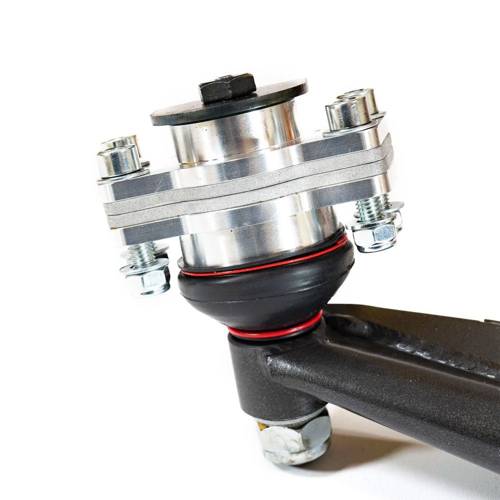 Diese Camber Arms lösen beide genannten Probleme gleichzeitig. Die Position des Rades kann so eingestellt werden, dass es sich in der Mitte des Radauschnitts befindet. Darüber hinaus sind diese Querlenker deutlich stärker und leichter als die OEM-Teile.