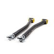 Der Ritzel- / Nachlaufwinkel beeinflusst für Wellenvibrationen und Handling. Bei Autos mit angehobener Fahrzeughöhe ändern sich diese Parameter drastisch. Außerdem befindet sich die Achse nicht mehr in der Mitte des Radauschnitts. Diese Arme lösen beide Probleme gleichzeitig.