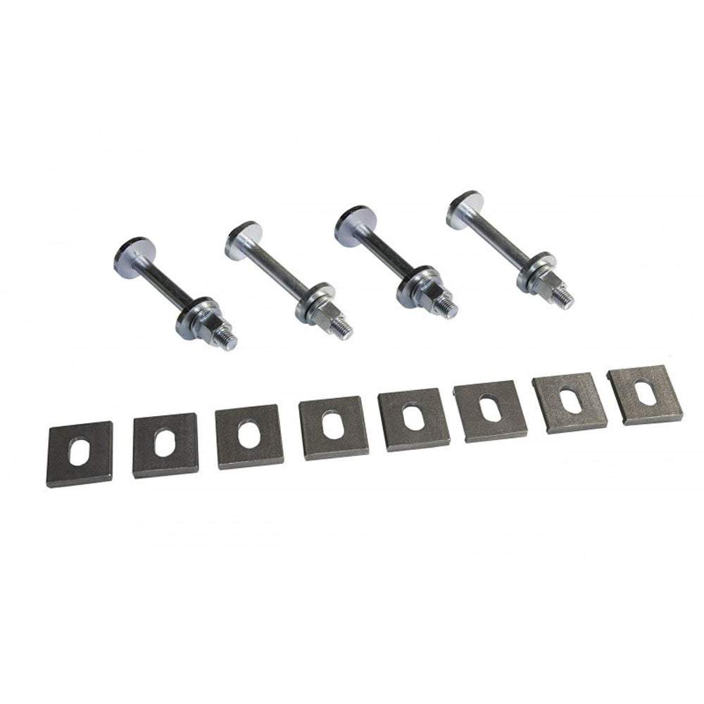 Lieferumfang: 8 Einschweißstücke, 4 exzentrische Schrauben, 4 selbstsichernde Bundmuttern, 4x exzentrische Unterlegscheiben
