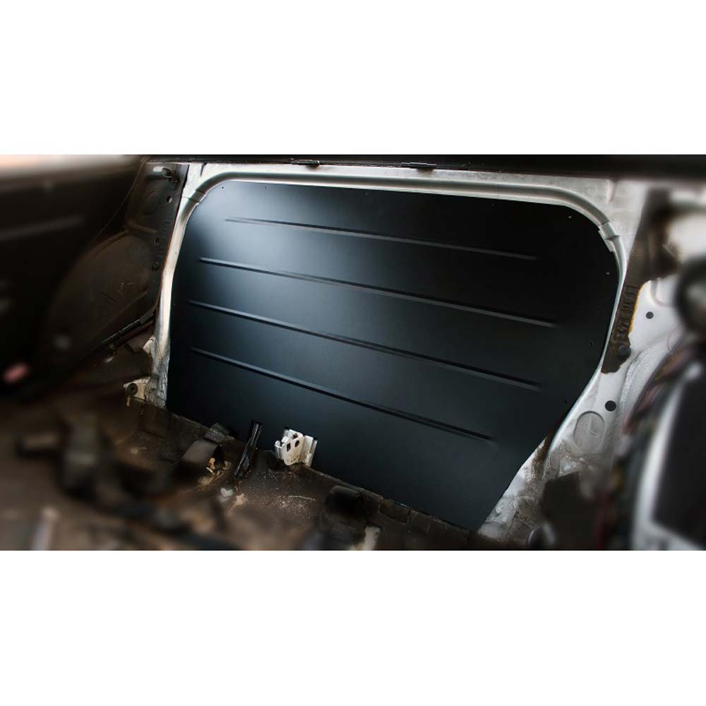 Die Fameform Spritzwand ist aus 1mm starkem Aluminium gestanzt und wiegt gerade einmal 1,3kg. Sie schützt den Innenraum effektiv vor Rauch, Staub und mögliche Feuer aus dem Kofferraumbereich bei ausgebauter Rücksitzbank. Durch die einseitige schwarze Pulverbeschichtung erhält sie zudem ein edles mattes Finish, dass den Innenraum zusätzlich aufwertet.