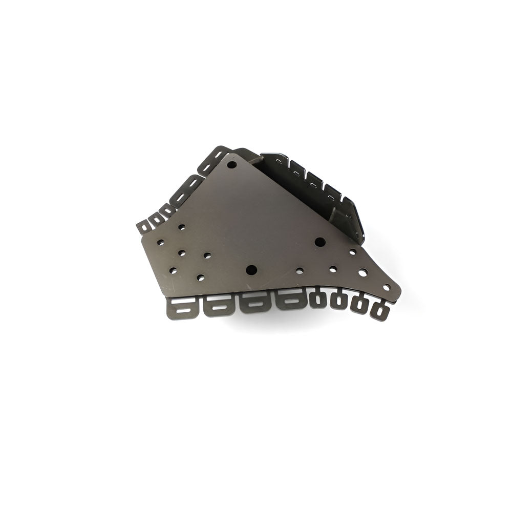 Im Set ist auch eine Schablone enthalten, die dir beim Zuschneiden der Karosserie hilft. Platziere sie einfach, bohre ein paar Löcher als Referenzpunkte und schon kannst du die neuen Körbe/Verstärkungen korrekt anschweißen. Stimmen die Bohrlöcher mit den Löchern in der Verstärkung überein, sitzt alles perfekt.