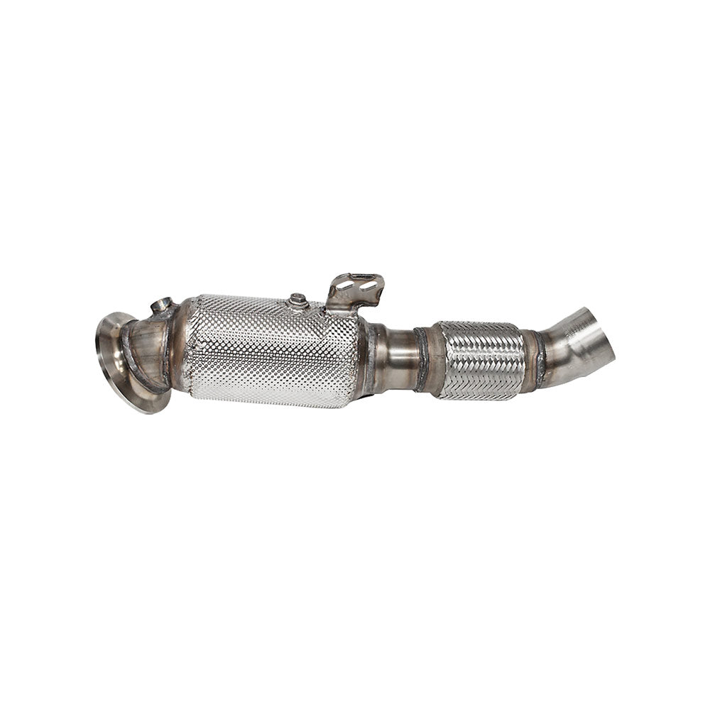 Gefertigt aus hochwertigem Edelstahl und ausgestattet mit einer motorsporterprobten Kalotten-Thermoisolierung, bietet diese Downpipe maximale thermische Effizienz und Schutz für umliegende Bauteile. Der verringerte Abgasgegendruck ermöglicht eine schnellere Drehzahlerhöhung des Turboladers und sorgt somit für mehr Drehmoment und ein deutlich agileres Fahrverhalten. Gleichzeitig erzeugt der Metallträger im Katalysator einen sportlich-sonoren Klang – satt, aber nicht aufdringlich.