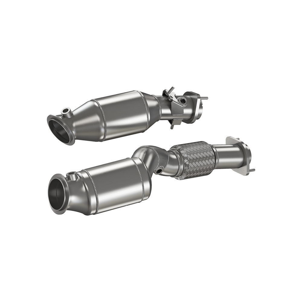 Diese HJS ECE Downpipes sind die optimale Lösung für alle BMW-Modelle mit dem leistungsstarken 3.0L S58B30 Motor. Dank der zwei 200 Zellen Metallkatalysatoren und großdimensionierter Vorderrohre (Ø 76/70 mm) wird der Abgasgegendruck deutlich reduziert – mit direktem Einfluss auf die Performance: mehr Leistung, schnelleres Ansprechverhalten und eine verbesserte Abgasdynamik. Egal ob Serienfahrzeug oder leistungsgesteigertes Setup – durch die ECE-Genehmigung ist der Umbau vollkommen eintragungsfrei und hat keinen Einfluss auf die Herstellergarantie.