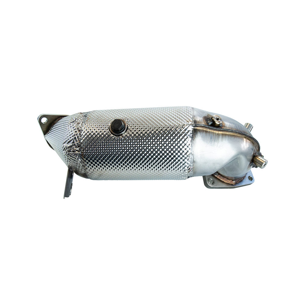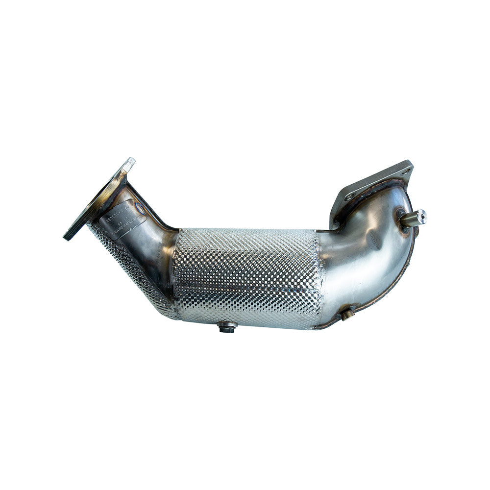 Die Downpipe ist integralisoliert, wodurch die Wärme gezielt im Abgasstrang gehalten wird – ideal für thermische Effizienz und den Schutz umliegender Komponenten. Dank „Plug & Play“-Design passt sie perfekt in dein Fahrzeug und lässt sich ohne aufwendige Anpassungen montieren. Die ECE-Genehmigung macht den Einbau eintragungsfrei – du brauchst keine TÜV-Abnahme und darfst die Downpipe legal im Straßenverkehr nutzen.