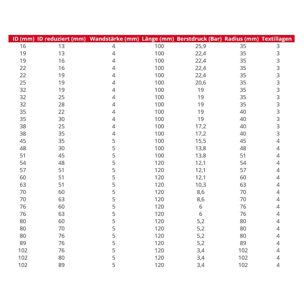 Lieferumfang: 1x 90° Reduzierer Silikonbogen