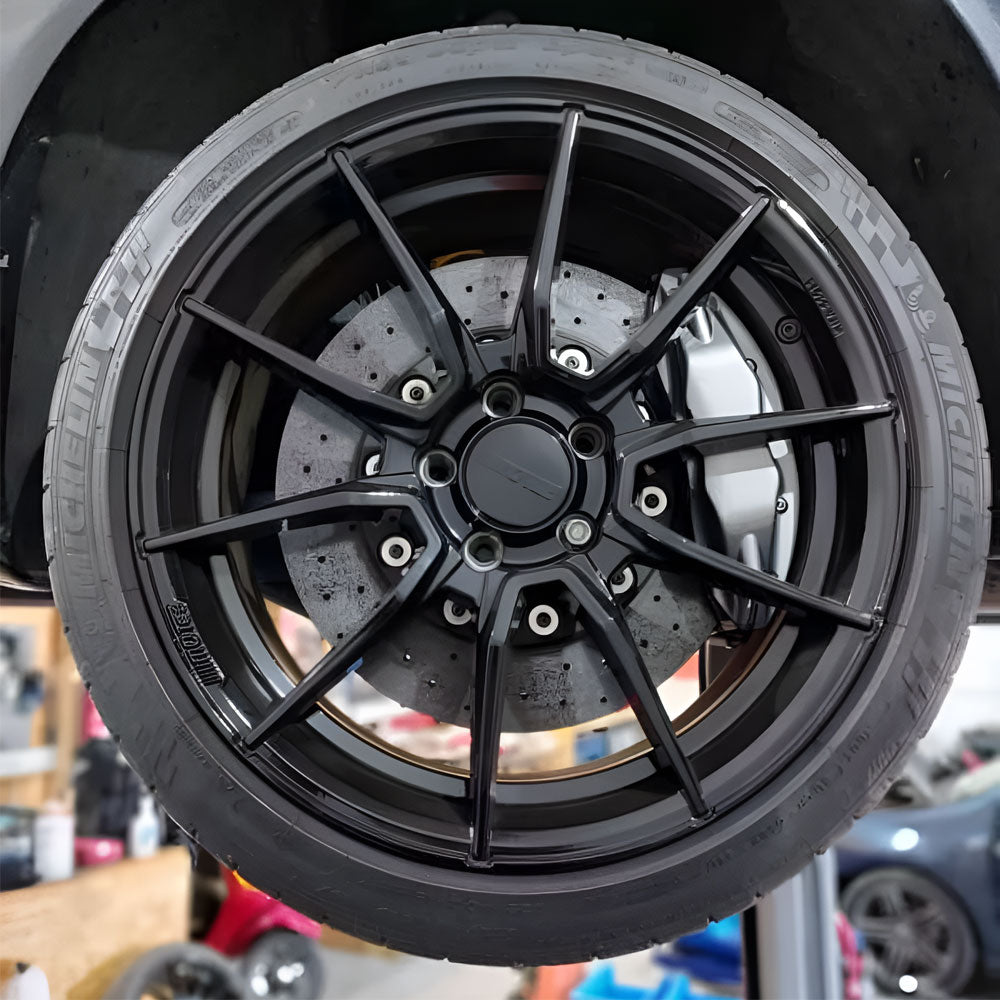 Unsere Bremssatteladapter ermöglichen den Einsatz der leistungsstarken 4-Kolben Audi R8 Keramik Bremssättel in Verbindung mit den originalen Audi R8 Keramik Bremsscheiben (356x32 mm) an Fahrzeugen mit Radlagergehäuse 4B3 407 258 A / 257 A: