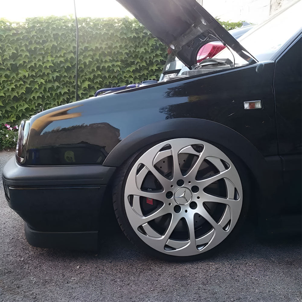 Durch Umbau des VR6-Achsschenkels (Plusachse) auch an vielen anderen Fahrzeugen passend.