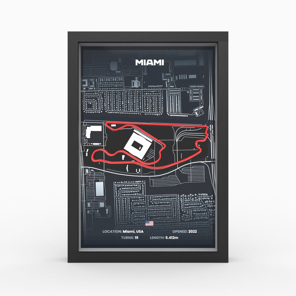 Dieses 3D-Poster verbindet moderne Technologie mit traditioneller Handwerkskunst und bietet eine beeindruckende Darstellung des Miami International Autodrome, die jedes Zuhause oder Büro bereichert.