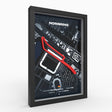 Eleganz in der Präsentation: Der dezente, anthrazitfarbene Rahmen hebt die technische Raffinesse und die harmonische Linienführung des Streckenlayouts hervor. Dank der unkomplizierten Wandmontage lässt sich dieses Kunstwerk ganz einfach in Szene setzen und wird so zum Blickfang in jedem Raum.