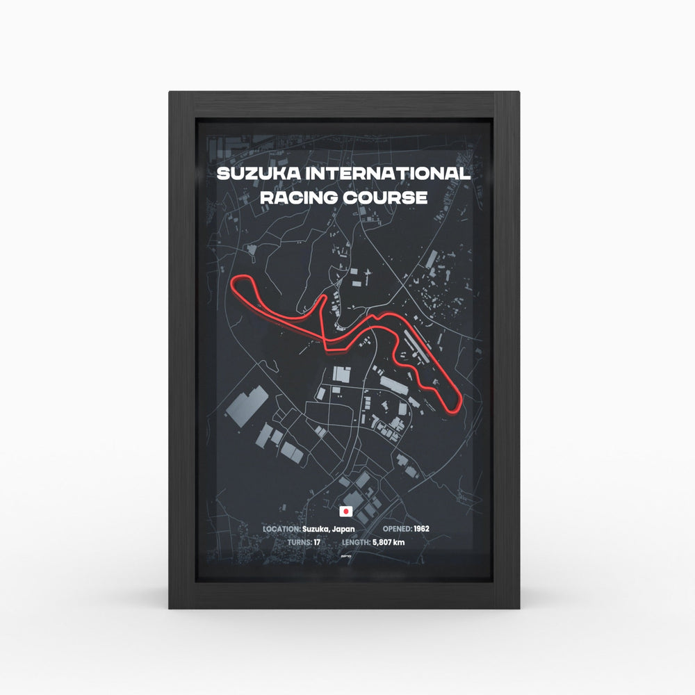 Dieses 3D-Poster verbindet moderne Technologie mit traditioneller Handwerkskunst und bietet eine beeindruckende Darstellung des Suzuka Circuit, die jedes Zuhause oder Büro bereichert.