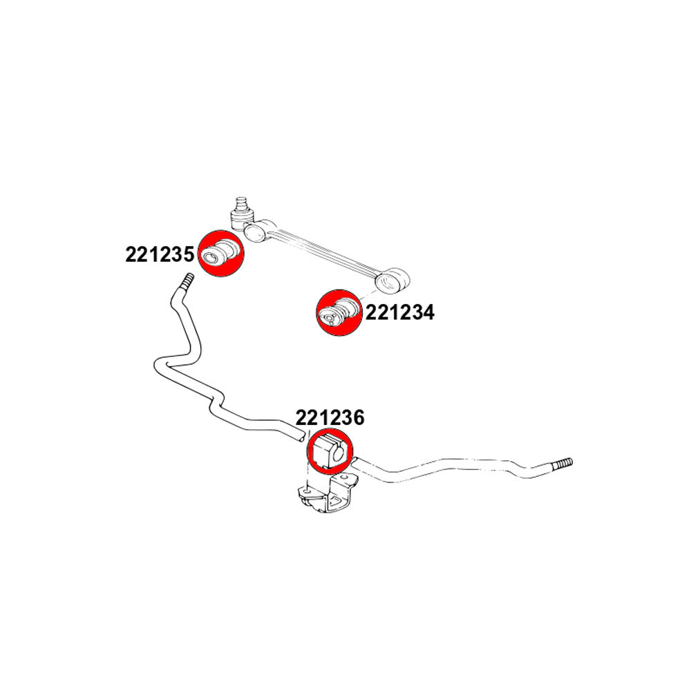 - 2x 221236B: vordere Stabilisatorbuchse (18-24 mm)