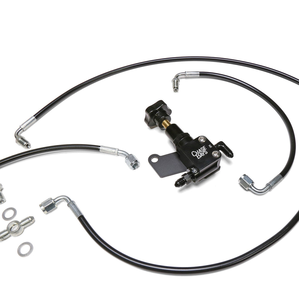 Das Chase Bays Relocation Kit für OEM Bremszylinder räumt nicht nur deinen Motorraum ordentlich auf, es ersetzt dir auch alle alten harten Bremsleitungen im Motorraum bis zum Kotfkügel. Durch den Wegfall des ABS erhältst du ein deutlich besseres Pedalgefühl und erweiterst den Grenzbereich deiner Bremsen über den Punkt, an dem das ABS bereits regeln würde.