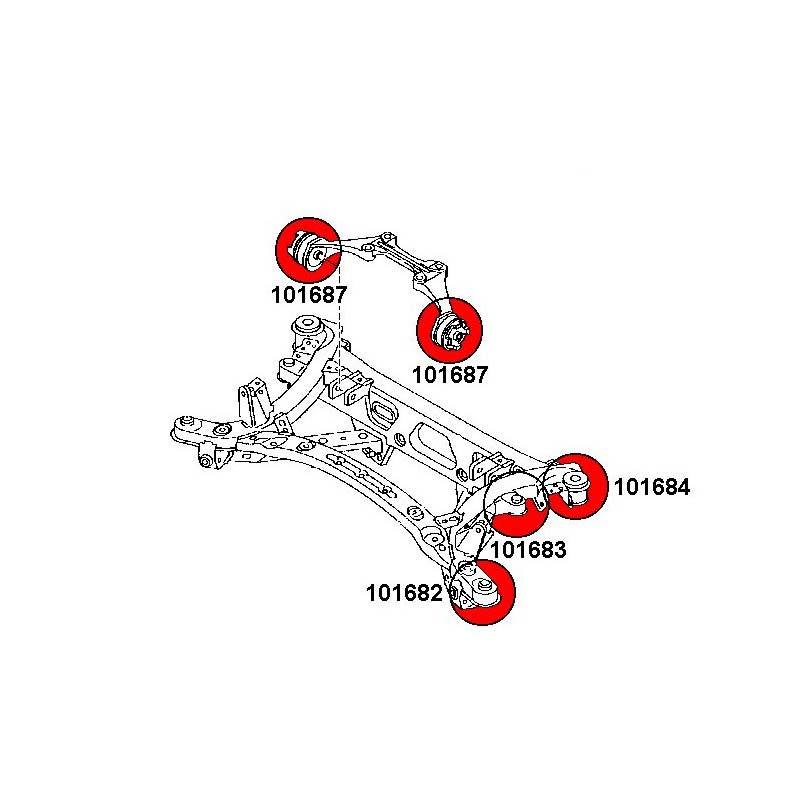 Mit diesem Kit ersetzt du alle OEM-Buchsen an der Vorder- und Hinterachse.