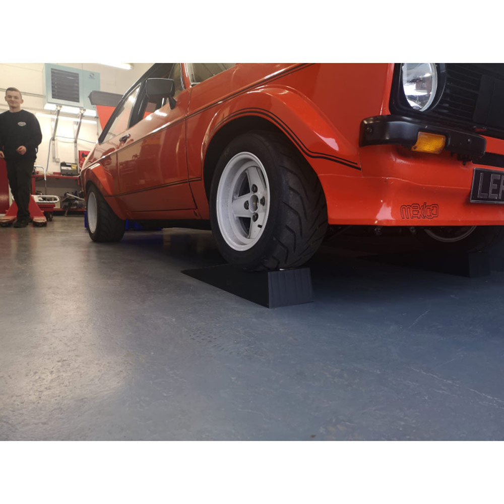 Die B-G Racing Mid Rise Vehicle Ramps bieten eine Erhöhung um 110 mm und sind damit ideal für schnelle Wartungsarbeiten oder den Einsatz eines Wagenhebers. Ob in der Werkstatt, bei Rallye- oder Trackday-Fahrzeugen – der flache Auffahrwinkel macht sie auch für tiefergelegte Fahrzeuge geeignet.