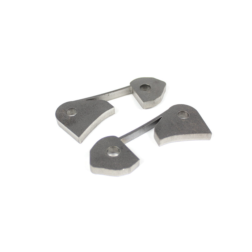 Die Adapter werden aus hochwertigem, sandgestrahltem S335-Stahl mit einer Stärke von 8mm gefertigt und per Laserschnitt präzise bearbeitet. Die Befestigung erfolgt an der Schwinge an der ursprünglichen Position des ABS-Sensors, welcher für das Schweißen entfernt und später um 90° versetzt montiert wird. Ein zusätzlicher Befestigungsbügel hält den Sensor sicher in Position, ohne dass eine Verschraubung erforderlich ist. Die Beispielbilder sind von einem BMW E46, jedoch gilt das selbe Montageprinzip.
