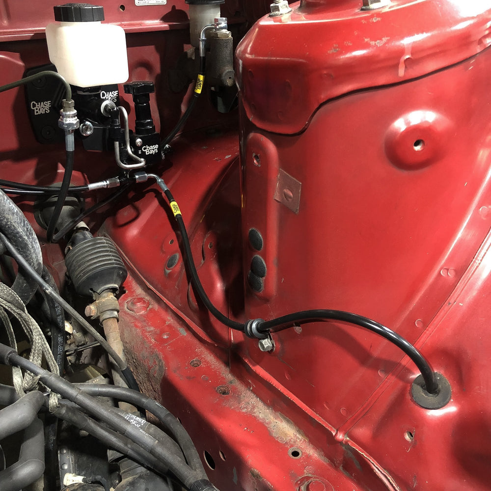 Das Chase Bays Brake Line Relocation Kit für Brake Booster Eliminator wurde speziell für Enthusiasten entworfen, die dem durcheinander im Motorraum ein Ende setzen möchten und die Bremsperformance verbessern möchten. Der originale Dosierblock wird eliminiert und mit einem einstellbaren Vorspannventil ersetzt.