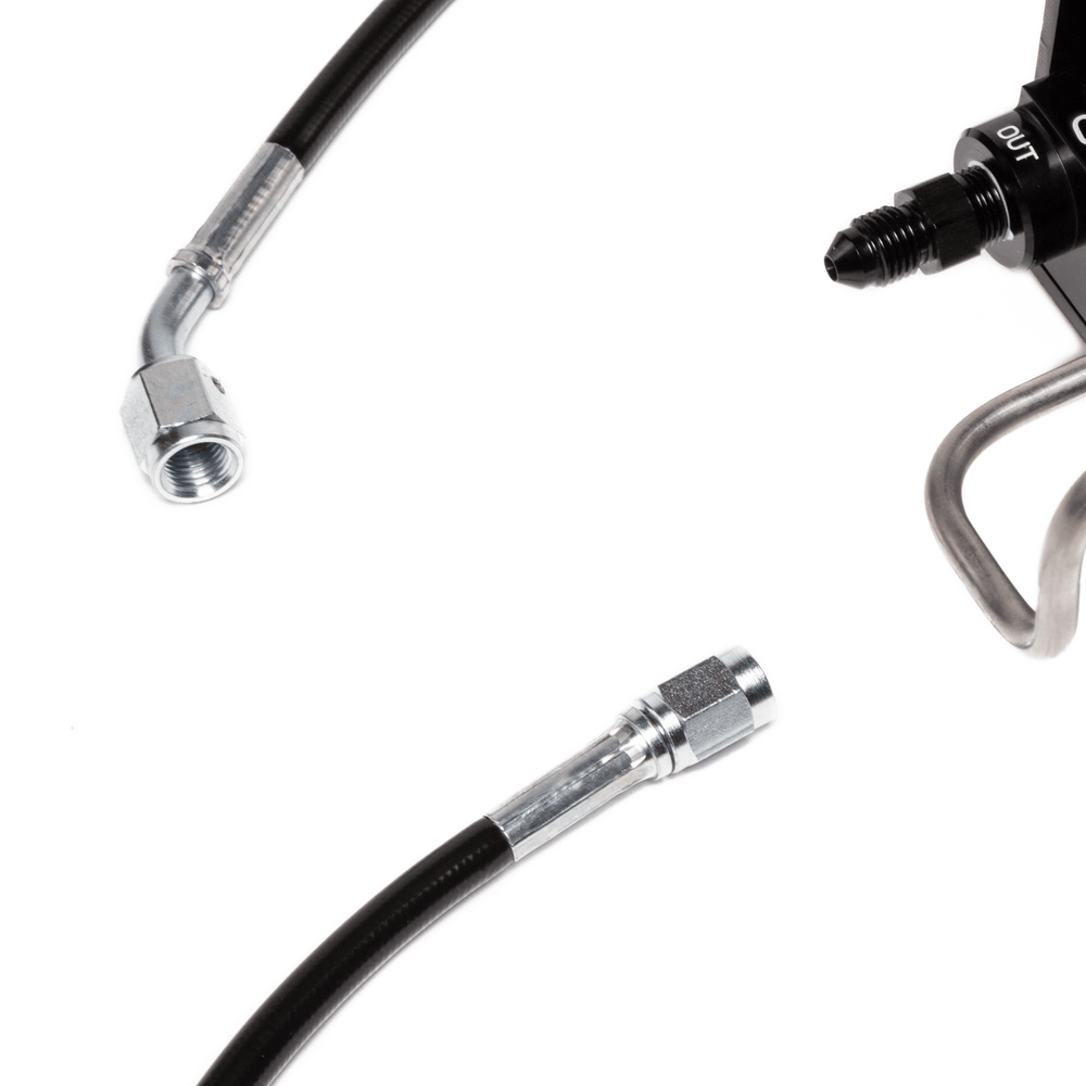 Das Kit besteht aus Teflon beschichteten -3AN Edelstahl-Flexleitungen mit Kunststoffmantel. Jede Leitung wird vor der Auslieferung einem Hochdruck-Test unterzogen.