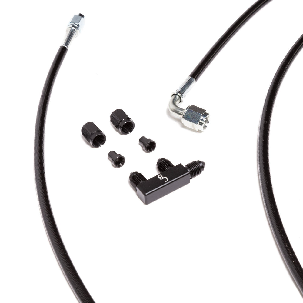 Das Kit besteht aus Teflon beschichteten -3AN Edelstahl-Flexleitungen mit Kunststoffmantel. Jede Leitung wird vor der Auslieferung einem Hochdruck-Test unterzogen.