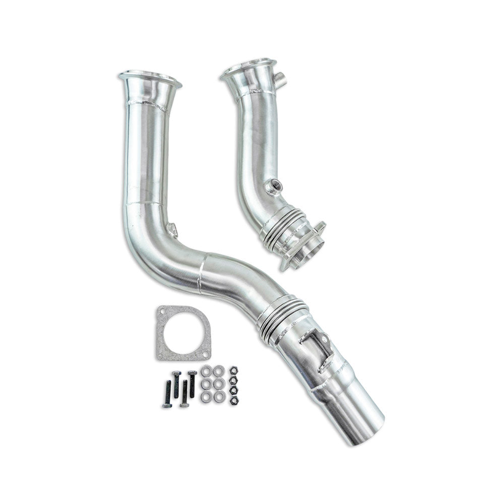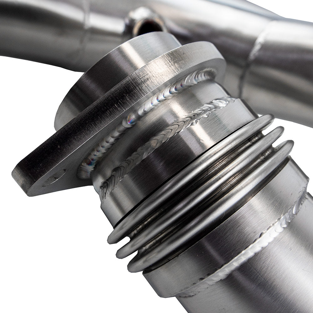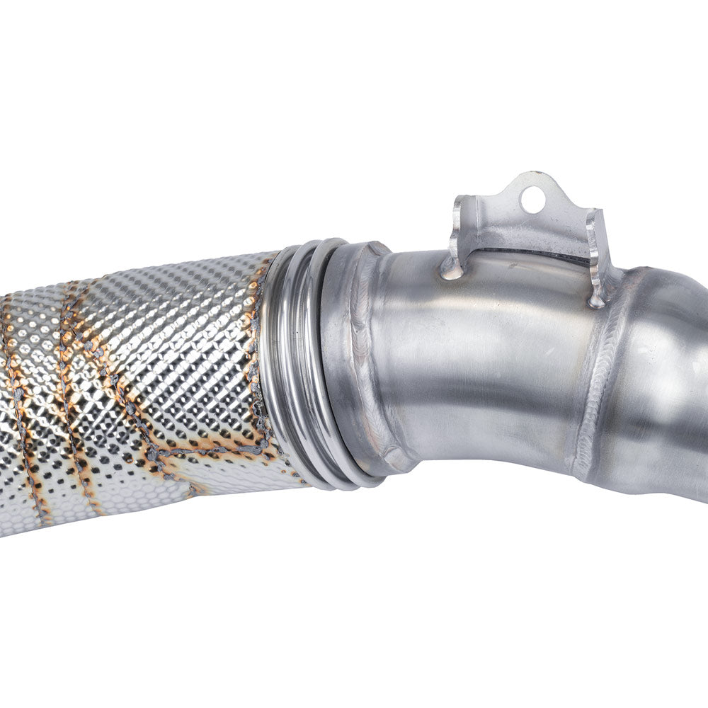 Die Bull-X 2,75"-Downpipe wurde speziell für den Einsatz in BMW M3 F80 und M4 F82 mit dem S55B30A Bi-Turbo-Motor entwickelt. Durch den vergrößerten Rohrquerschnitt (70 mm) kann der Turbolader Abgase deutlich effizienter abführen. Das reduziert den Abgasgegendruck, entlastet den Lader thermisch und sorgt für ein spürbares Plus an Leistung und Drehmoment – besonders im mittleren Drehzahlbereich. Perfekt für den Track oder ambitionierte Leistungssteigerungen – diese Downpipe ist die erste Stufe für mehr Fahrdynamik und ein deutliches Sound-Upgrade.