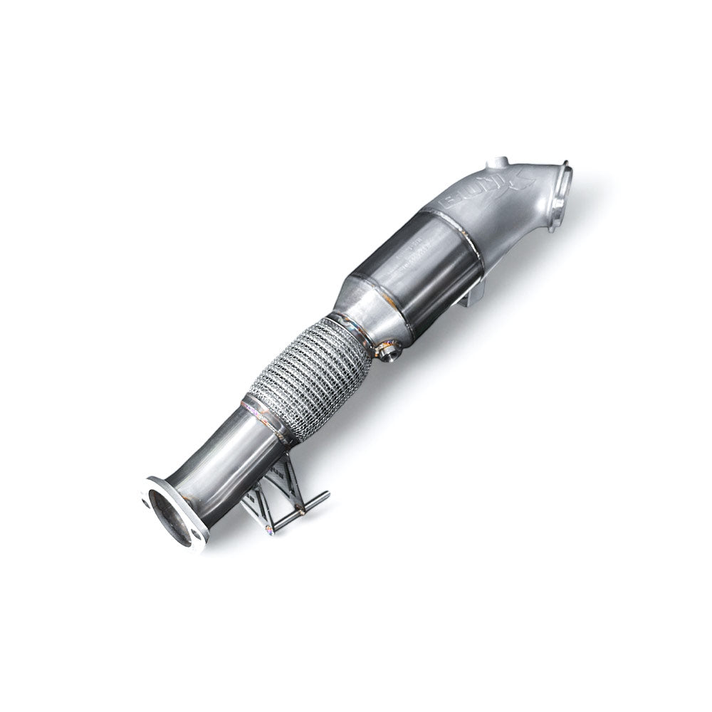 Die Bull-X Downpipe für den Ford Focus ST Mk3 2.0 EcoBoost (250 PS) bringt dein Fahrzeug auf ein neues Performance-Level. Mit 76 mm Rohrdurchmesser, strömungsoptimierter Rohrführung und einem optional erhältlichen ECE-zugelassenen HJS-Sportkatalysator wird die Abgasführung signifikant verbessert. Das bedeutet: weniger Staudruck, geringere Abgastemperaturen und ein deutliches Plus an Leistung und Ansprechverhalten – legal und eintragungsfrei mit ECE-Variante.