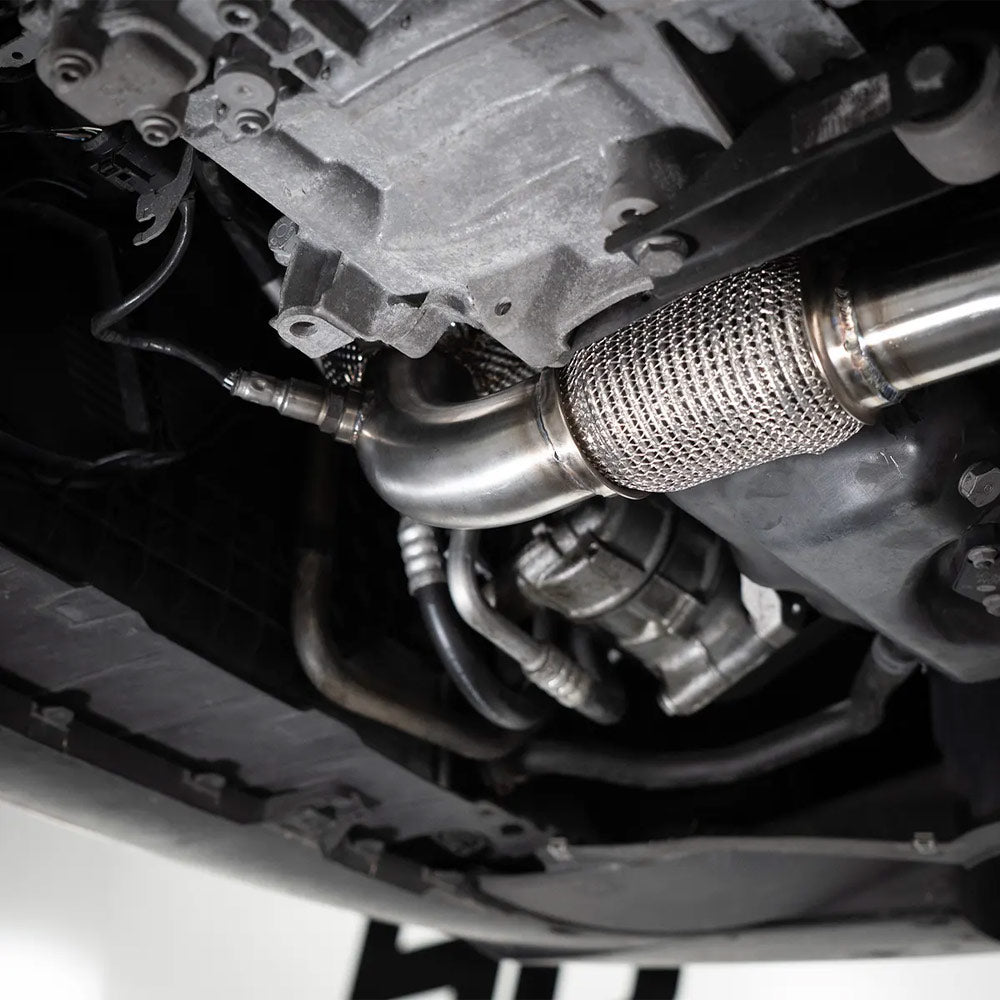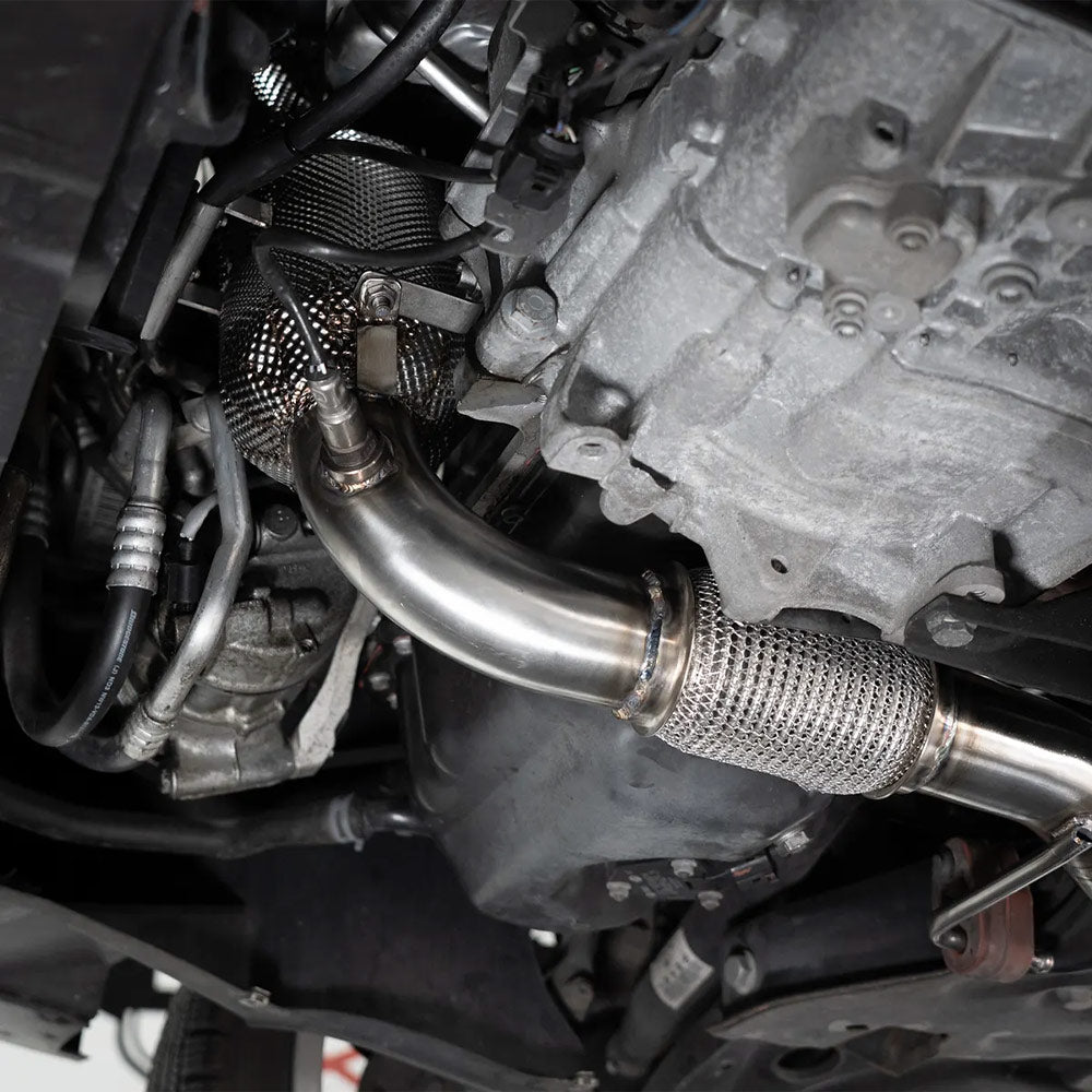 Je nach Ausführung ist die Downpipe sowohl mit als auch ohne Katalysator erhältlich – bei Auswahl der ECE-Variante ist sie legal im Straßenverkehr einsetzbar. Varianten ohne ECE-Zulassung sind ausschließlich für den Einsatz im Motorsport vorgesehen.