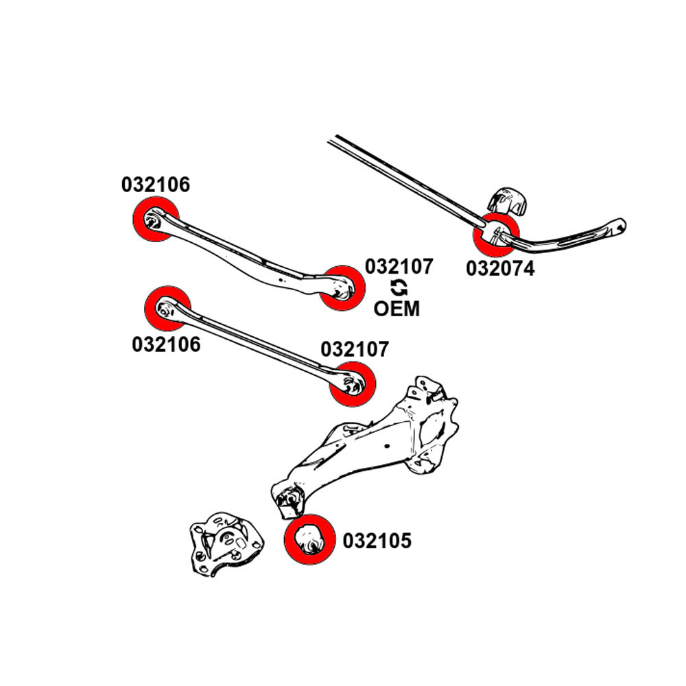 - Für Fahrzeuge, die nach 12/2019 hergestellt wurden: Diese Modelle haben einen Schwingarm mit Gummibuchsen – es werden 4 Stück pro Fahrzeug benötigt.