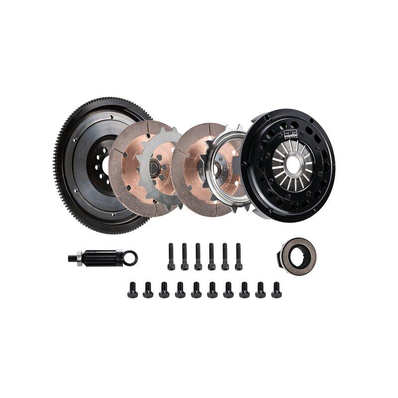 Die Doppelscheiben-Kupplungssätze standfest bis zu 1020Nm sind ideal für Fahrzeuge mit hoher Leistung und hohem Drehmoment. Konstruiert aus einer Druckplatte für erhöhte Steifigkeit und keine Durchbiegung der Klemmkraft. Die zusätzliche Kontaktfläche, die durch den Aufbau mit zwei Keramikscheiben und den kleineren Durchmesser bereitgestellt wird, führt zu einer Verringerung des Trägheitsmoments, wodurch die Motorbeschleunigung maximiert wird.