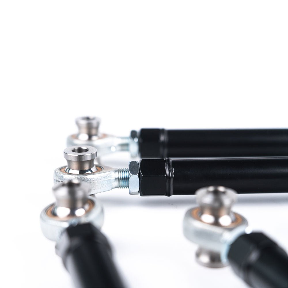 Die originalen Lenker bieten ab Werk keine Möglichkeit zum Einstellen. Gerade nach einer Tieferlegung ist dies jedoch notwendig, um die Achsgeometrie wieder korrekt oder nach belieben auszurichten. Im Motorsport ist eine Anpassung der Achsgeometrie auf die Bedürfnisse des Fahrers und die Gegebenheiten der jeweiligen Strecke sowieso unabdingbar.Mit dem einstellbaren Lenker Set von CNC71 kannst du bequem Sturz und Spur in einem großen Bereich einstellen und zwar im eingebauten Zustand.