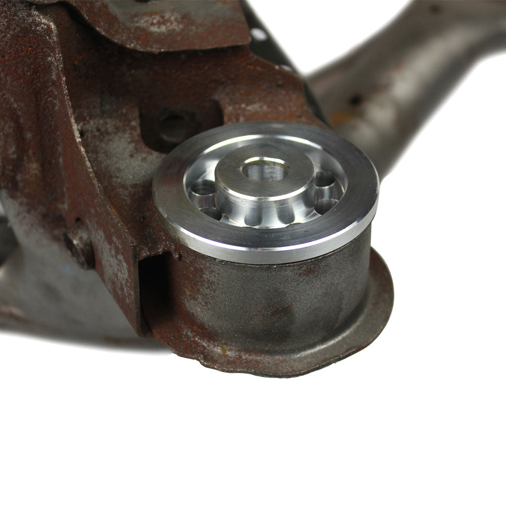 Werksseitige Fahrwerksbuchsen sind aus Komfortgründen meist weich und bieten der Verbindung ein gewisses Maß an Spiel. Die an der Hinterachse auftretenden Kräfte erzeugen dadurch Geometrieänderungen im Fahrbetrieb, welche sich durch ein unpräzises Fahrverhalten und ein „schwimmen“ der Hinterachse äußern. Mit diesem Hinterachsträger Buchsen-Set stellst du eine starre Verbindung der Hinterachse mit der Karosserie her und eliminierst somit dieses Spiel. Das Ergebnis ist ein deutlich direkteres Fahrverhalten an der Hinterachse sowie ein riesiger Feedback-Gewinn an den Fahrer. Weiterhin werden Gasbefehle deutlich direkter und schneller umgesetzt.