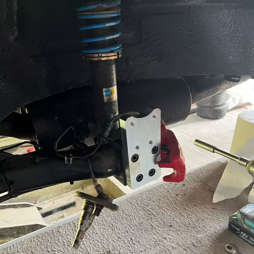 Unsere Achsversatzplatten ermöglichen es, die Hinterachse um beeindruckende 70 mm abzusenken. Hergestellt aus hochfestem Stahl und vollständig verzinkt, werden sie mit Montageschrauben geliefert.