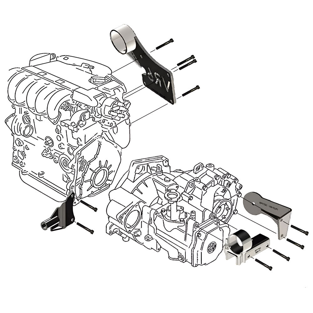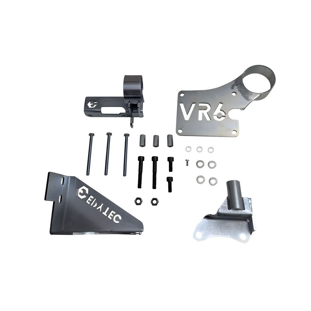 - 1x Umbausatz mit Motoren- und Getriebehalter: Enthält 4 Halter für den VR6 Motorenumbau (siehe Bild), alle in bester Qualität und spannungsfrei geschweißt.