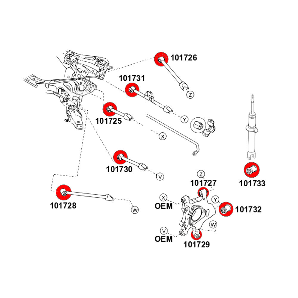 Mit diesem Kit ersetzt du alle OEM-Buchsen an der Hinterachse.