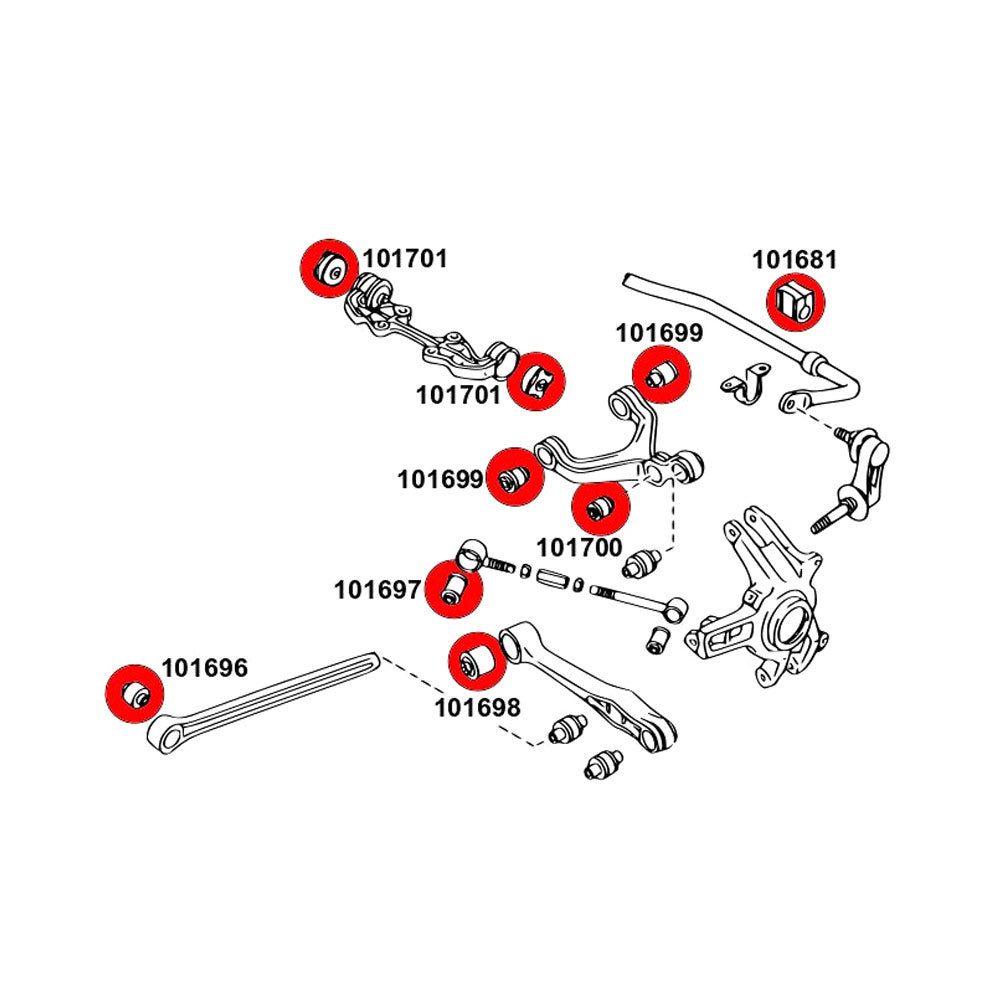 Mit diesem Kit ersetzt du alle OEM-Buchsen an der Hinterachse.