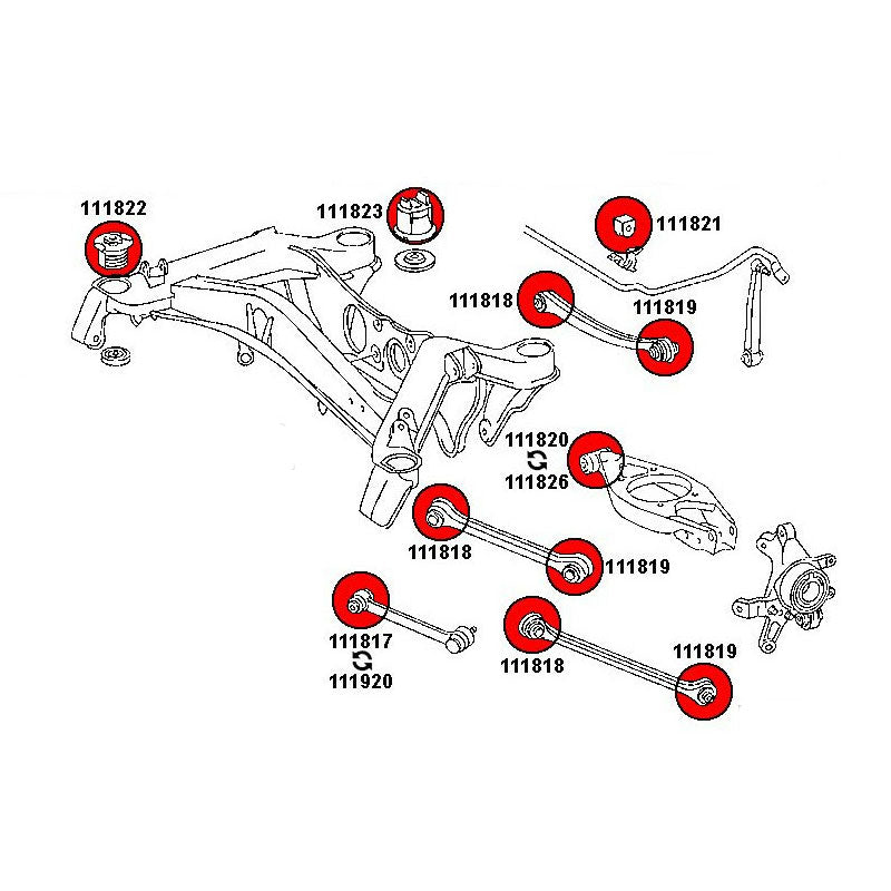 - 6x Hinterachse Querlenker äußere Buchse (111819)