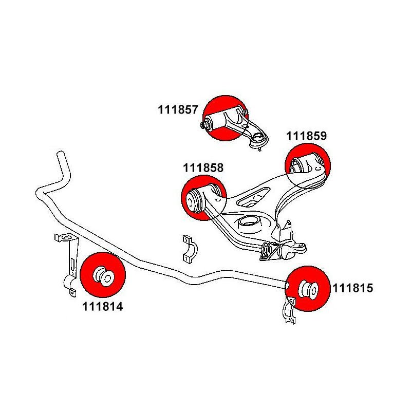 Hinweis: Bitte vor der Bestellung die Durchmesser der Stabis überprüfen. Zusätzlich ist zu beachten, dass bei der Montage der Hülse 111819 die originale 13mm Hülse aus dem Querlenker benötigt wird.