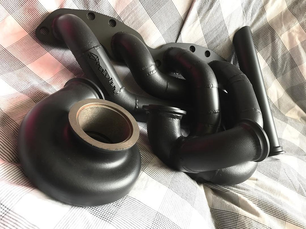 Die Speedtek Mid Mount TD06-Auspuffkrümmer sind die perfekte Wahl für alle, die auch unter extremer Belastung Stärke und Steifigkeit benötigen. Sie haben eine Wandstärke von ca. 3 mm und passen direkt bei allen Nissan S13, S14, S15, welche den SR20DE(t)-Motor verwenden.