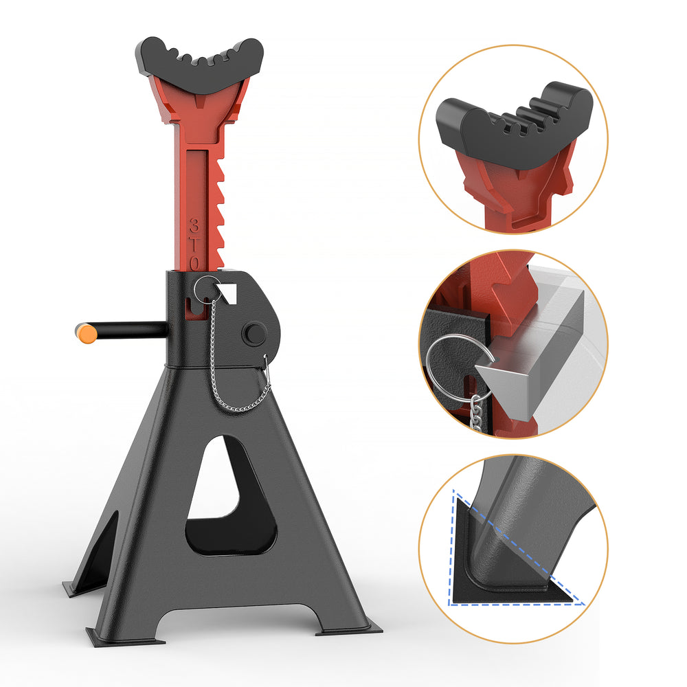 Dank der robusten Konstruktion aus hochwertigem Stahl bieten die WERMANIA Unterstellböcke eine zuverlässige Unterstützung und garantieren Sicherheit bei der Arbeit unter dem Fahrzeug. Die höhenverstellbaren Stützböcke ermöglichen eine Hubhöhe von 260 mm bis 435 mm, sodass Sie die ideale Arbeitshöhe für Ihre spezifischen Anforderungen einstellen können. Der integrierte Zahnstangenmechanismus ermöglicht eine präzise Höhenverstellung und sorgt für zusätzliche Stabilität und Sicherheit. Die rutschfesten Gummiauflagen der Stützböcke halten das Fahrzeug sicher und verhindern gleichzeitig Schäden am Unterboden.