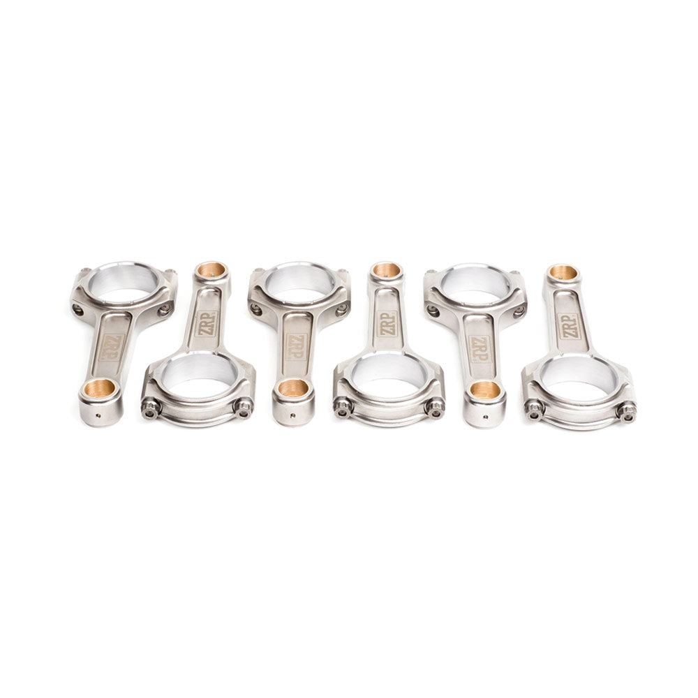 Die ZRP HD Series I-Beam Pleuel für Toyota Supra 2JZ Motoren wurden speziell für Hochleistungs- und High-Boost-Anwendungen entwickelt. Sie werden aus hochzugfestem 4340-Stahl gefertigt und besitzen eine optimierte Form für maximale Belastbarkeit und extreme Haltbarkeit. Die AMPCO18-Buchsen gewährleisten exzellente Verschleiß- und Ermüdungsfestigkeit und verfügen über eine radiale Ölrinne, die eine optimale Schmierung sicherstellt. Shot Peening reduziert Materialspannungen, während eine mehrstufige Wärmebehandlung die Steifigkeit deutlich erhöht. Enge Fertigungstoleranzen garantieren perfekte Passung, optimierte Ölspiele sowie kontrollierte Biege- und Verdrehwerte. Jedes Pleuel wird mit 3/8 ARP 2000 Schrauben (220.000 psi) geliefert. Das Set wird inklusive ARP-Moly-Schmiermittel und vollständiger Einbauanleitung ausgeliefert.