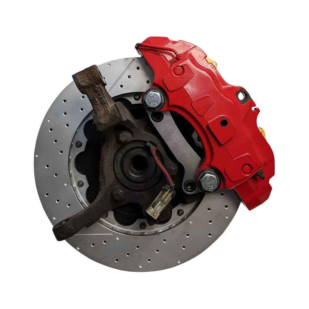 - Bremsscheiben vom Mercedes CLK 360x32mm, Teilenummer: 2094210112 (Die Bremsscheiben müssen auf 5x110 umgebohrt und der Nabendurchmesser auf 70mm aufgedreht werden.)