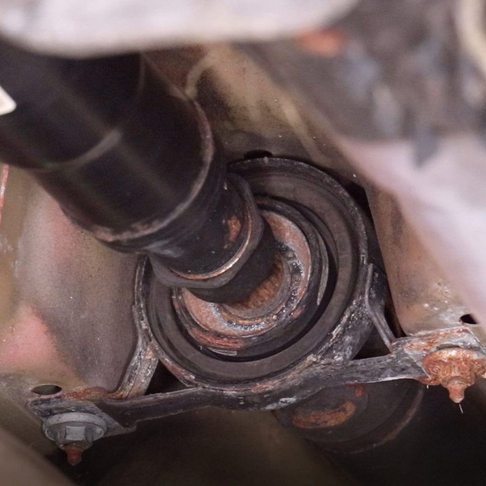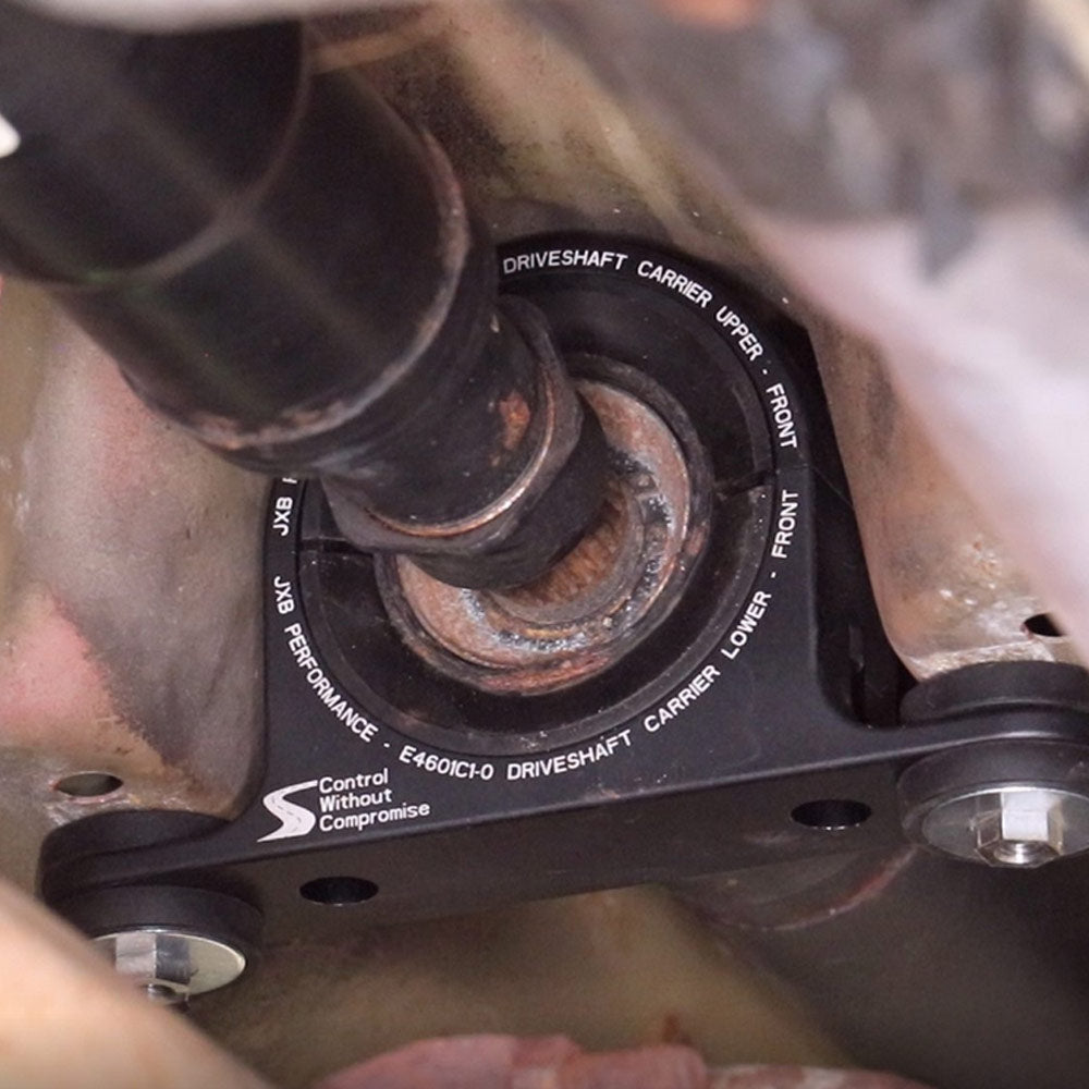 Die Montage ist denkbar einfach: Das zweiteilige Design umschließt das serienmäßige Lager ohne Ausbau der Kardanwelle. Lediglich der originale Träger muss entfernt werden – dafür wird ein Schneidwerkzeug benötigt.
