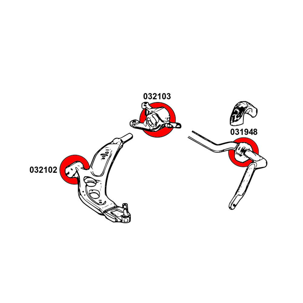 - Für Fahrzeuge, die nach 12/2019 hergestellt wurden: Diese Modelle haben einen Schwingarm mit Gummibuchsen – es werden 4 Stück pro Fahrzeug benötigt.