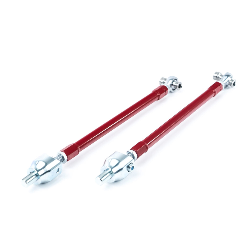 Gefertigt aus hochwertigem Stahl und Aluminium und präzise mit CNC-Technologie bearbeitet, sind alle Komponenten entweder pulverbeschichtet oder galvanisch verzinkt und somit bestmöglich vor äußeren Einflüssen geschützt. Die Verwendung von wartungsfreien Kugelgelenklagern ersetzt herkömmliche Gummibuchsen und ermöglicht ein direkteres, präziseres Feedback beim Fahren – ideal für den Einsatz auf der Rennstrecke.