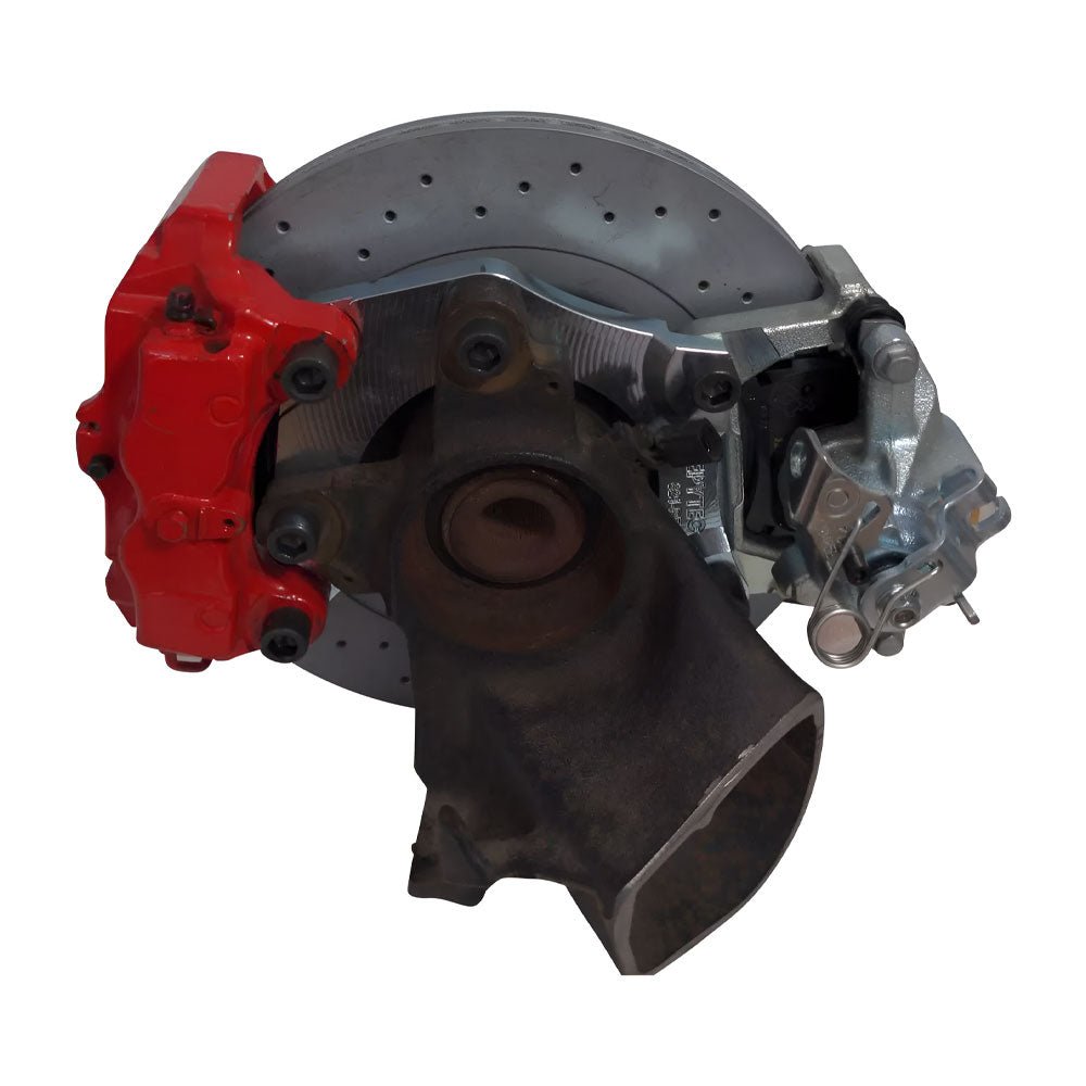 Mit den EPYTEC Bremssatteladaptern kannst du die Hinterachse deines VW T5 und T6 Bus mit den leistungsstarken Porsche Cayenne 4-Kolben Bremssätteln und Audi A4 A5 Bremsscheiben aufrüsten. Diese Kombination bietet extreme Verzögerungswerte und ist dank des Materialzertifikats für eine Eintragung per Einzelabnahme geeignet.