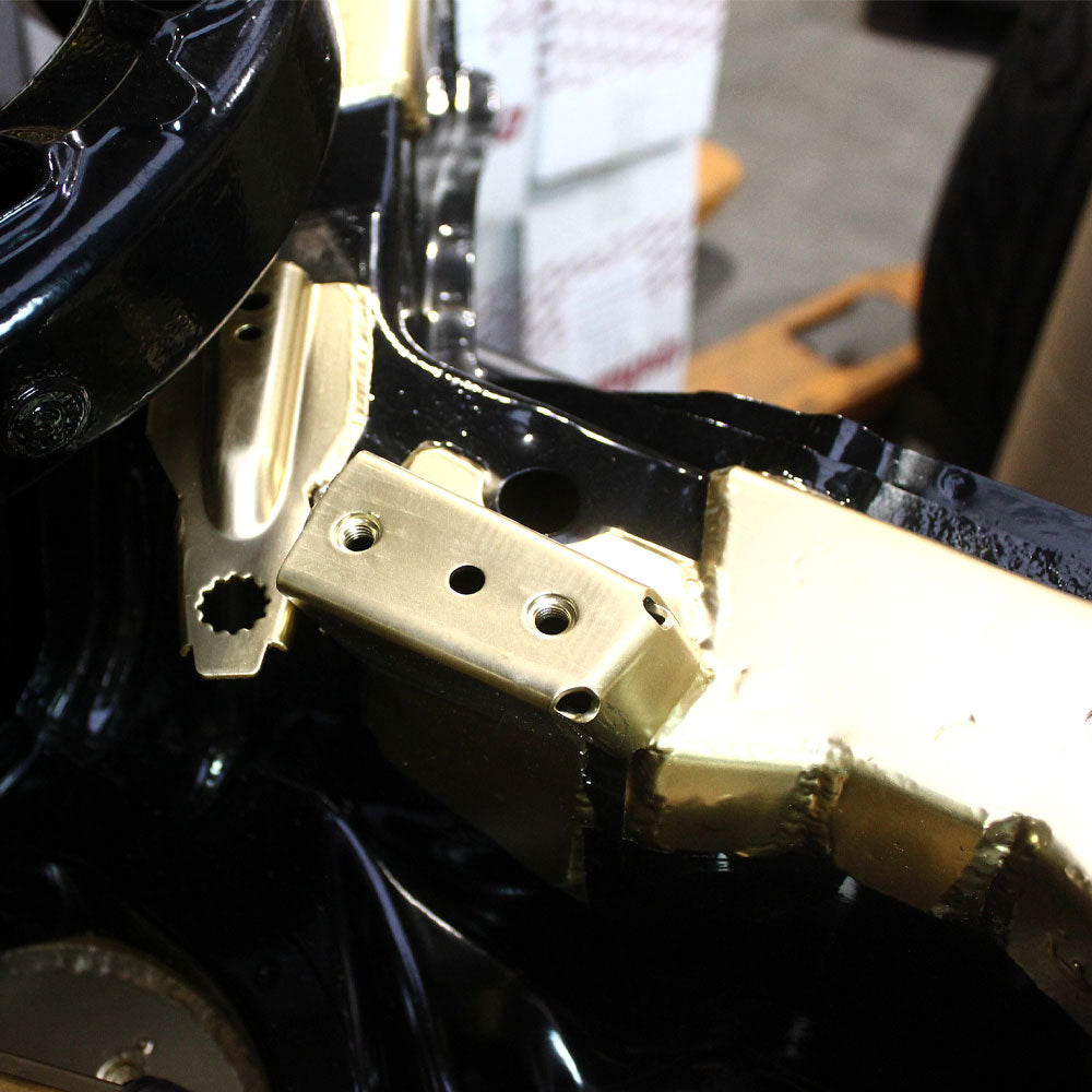 Das Set umfasst 4 Tankhalterungen und 2 Bremsleitungshalterungen, die zur Verstärkung der hinteren Karosserie beitragen und die Festigkeit der Haltepunkte wiederherstellen. Die Komponenten sind aus hochwertigem 2 mm dickem S355-Stahl gestanzt und gepresst, um eine optimale Passform und hohe Belastbarkeit zu gewährleisten.