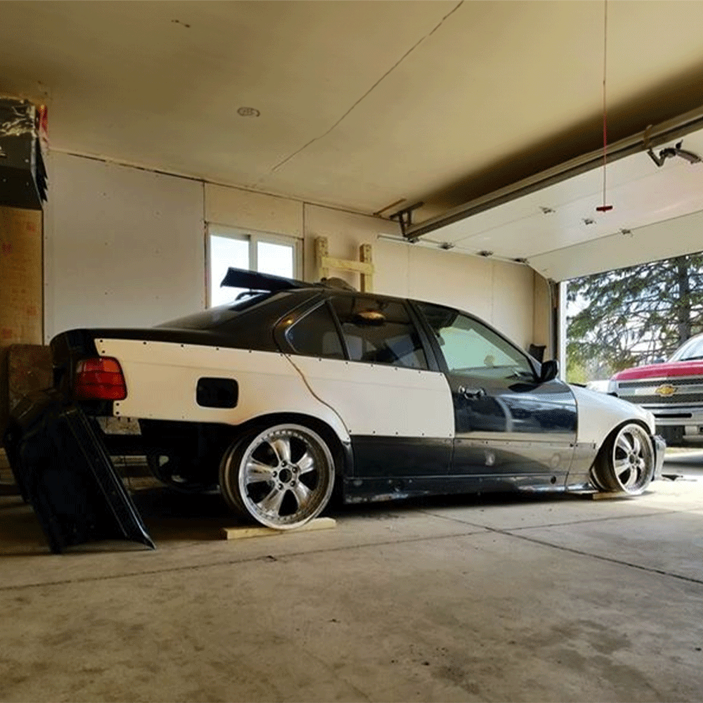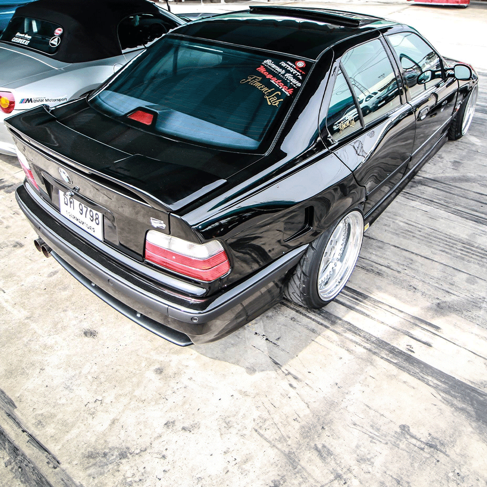 Dieses FITMENT LAB Widebody-Kit verleiht deinem BMW E36 eine markante, funktionale Karosserieverbreiterung. Mit +35 mm vorne und +52 mm hinten pro Seite entsteht zusätzlicher Platz für breite Räder und aggressive Reifen-Kombinationen, während die Fahrzeuglinie sauber bleibt. Die Anpassung der Radlauflinie sorgt für eine korrekte Fahrzeugausrichtung – keine freiliegende Hinterachse oder sichtbarer Auspuff.